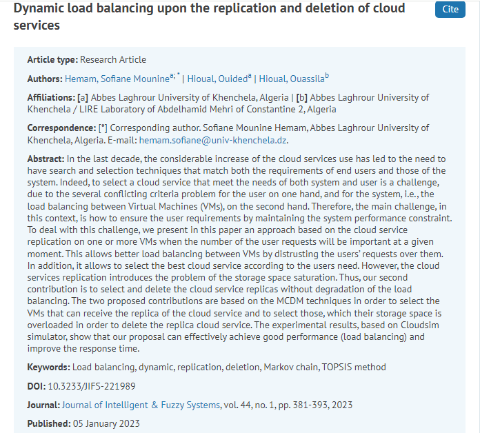 Hemam, Sofiane Mounine, Hioual, Ouided, and Hioual, Ouassila. ‘Dynamic Load Balancing Upon the Replication and Deletion of Cloud Services’. 1 Jan. 2023 : 381 – 393.